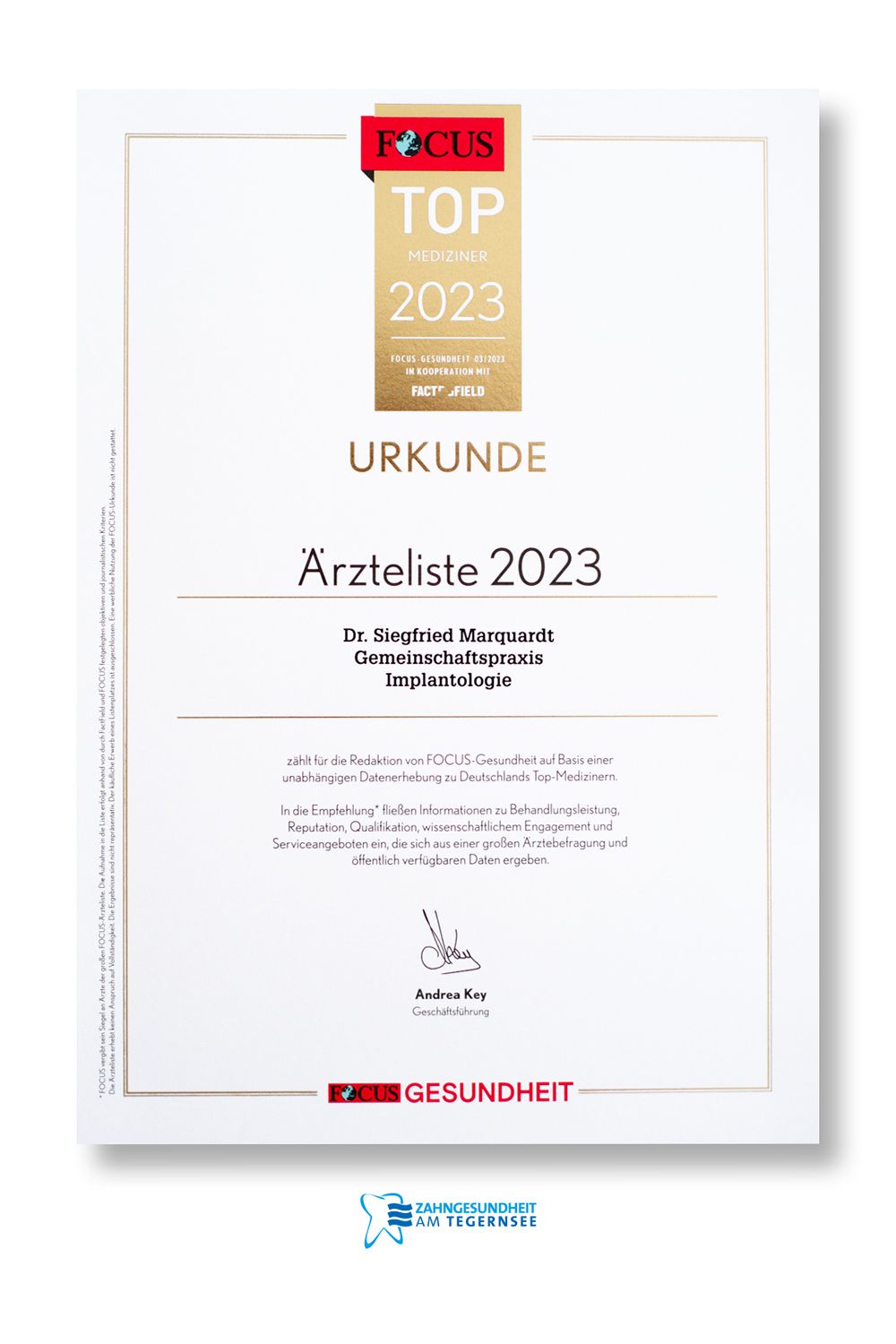 Unsere Praxis wurde ausgezeichnet. Ilse Aigner überreichte den Wirtschaftspreis in Gmund am Tegernsee vor 500 geladenen Gästen aus Politik, Wirtschaft und Gesellschaft.